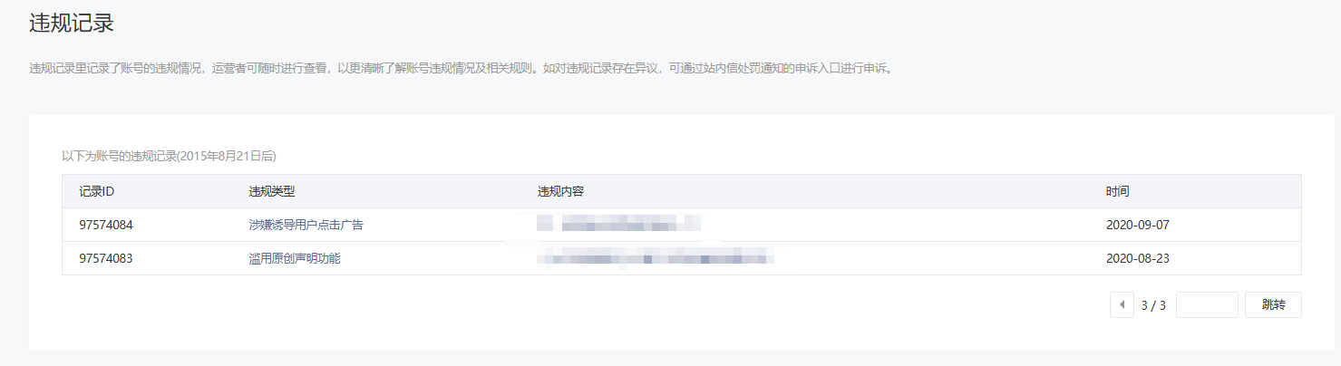 • 违规记录